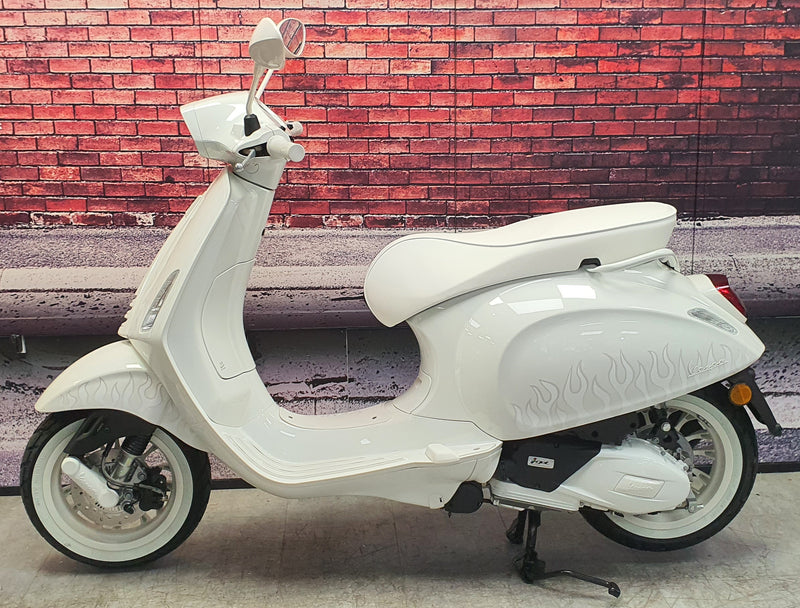 The wildly popular, sporty Vespa Sprint has been adapted to a new sleek, monochrome look while still celebrating individuality with the graphic flame element that stretches across the lower body of the scooter, something that is immediately recognizable without distracting from Vespa’s timeless silhouette. A celebration of freedom, personal style, and just doing YOU.