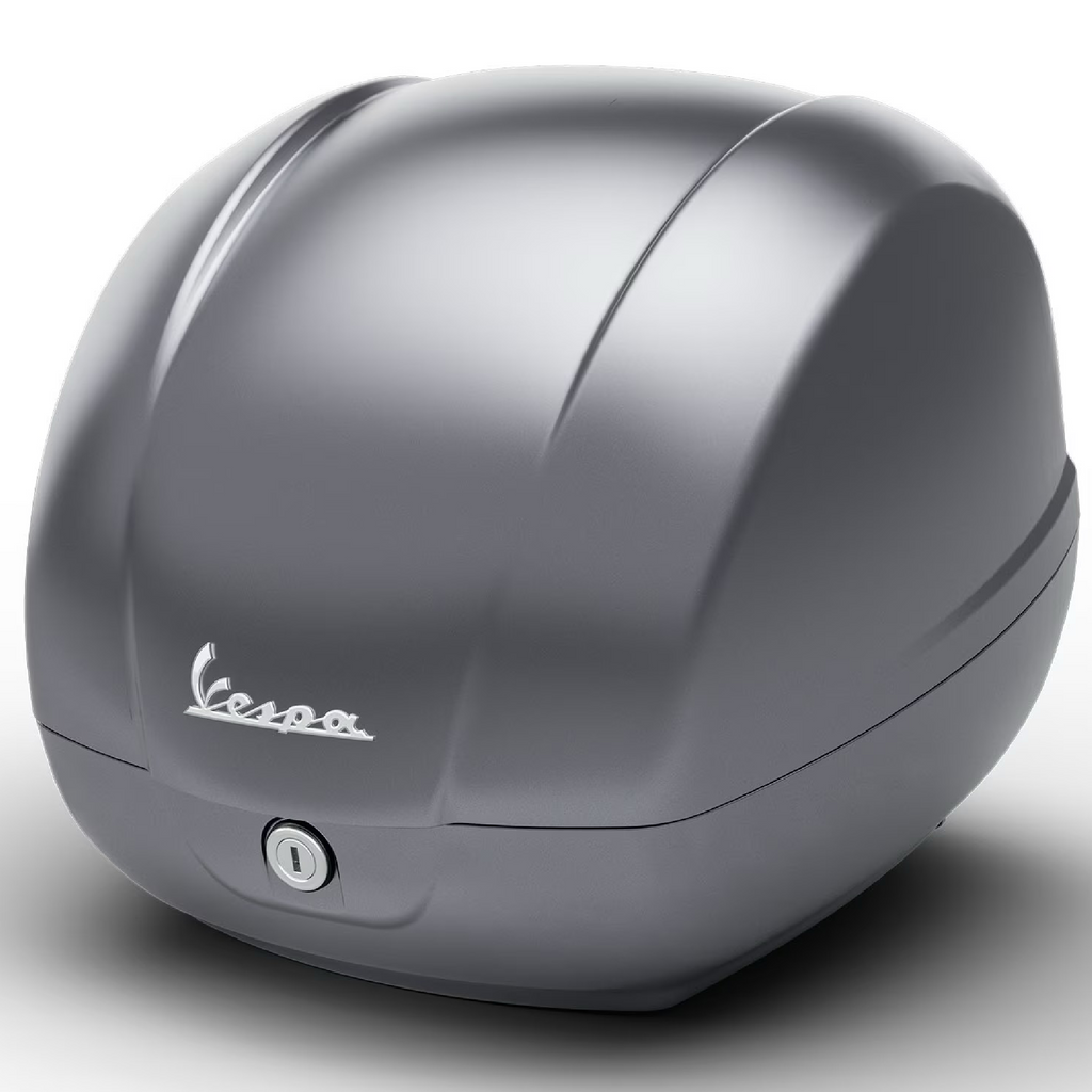 Painted top box, with a Fresh and modern design complementing the soft, flowing forms of the Vespa. It can hold 2 Jet helmets ECE 22.06. Available in colours to match your vehicle. Backrests sold separately as accessories and available in the same material and colour as the saddle.